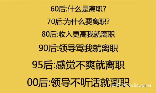 所謂"跨代際問題",我的理解是:兩個或多個有代溝的員工群體的管理問題。所謂“代溝”,則是指因年齡差異而產生的價值觀差異。過去說一代,一般就指二十年或者十年,但是隨著社會發展、生活節奏、知識更新等速度加快,一代所指的時間越來越短,已經變成五年一代甚至三年一代了。 這個跨代際管理并不是什么新問題,大約是從“80后”步入職場開始引起熱議的,那時候他們被稱為“小皇帝”、“垮掉的一代”,成了社會熱點話題,然后大家就似乎養成了貼標簽的習慣,開始研究“90后”、“95后”、“00后”了。